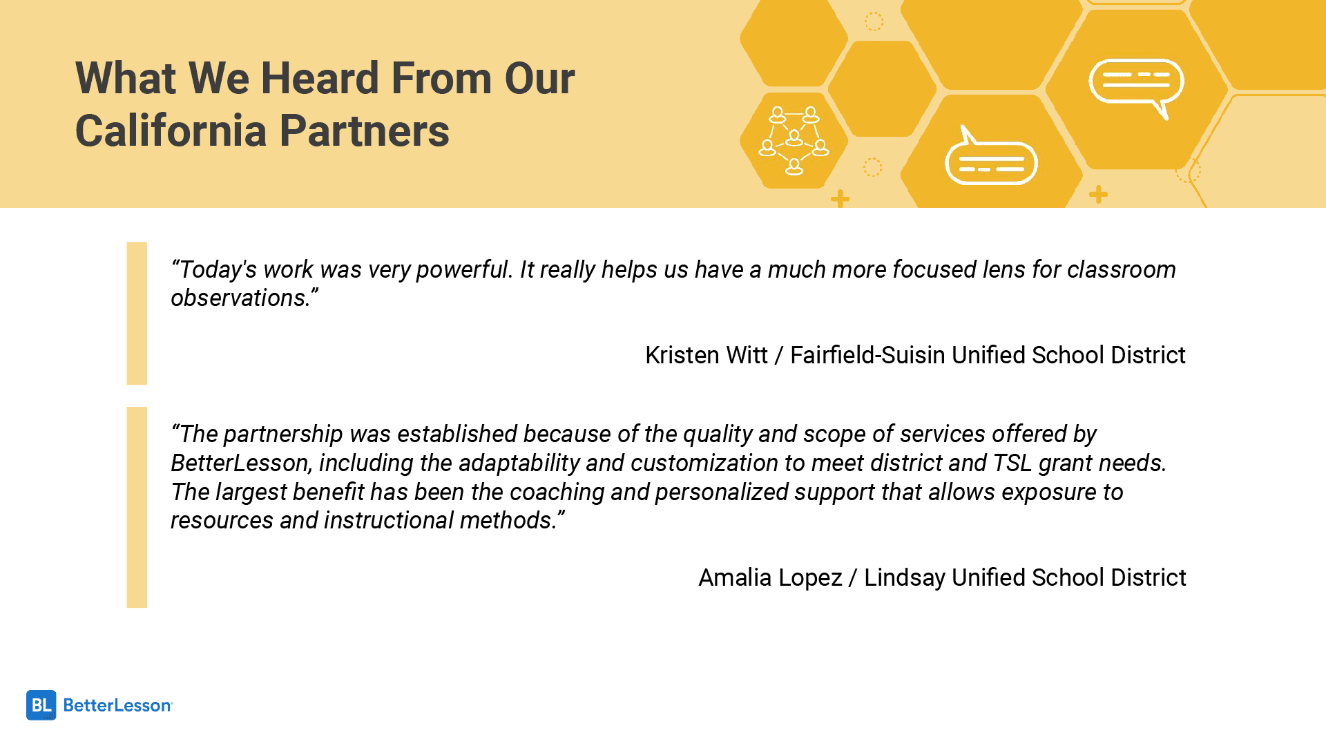 To support BetterLesson’s strategic repositioning efforts, I collaborated with cross-functional teams as the lead Graphic Designer to (1) develop and structure new layouts that effectively presented all BetterLesson products for the back-to-school season and (2) improve and refine the visual appeal of testimonial slides that were used extensively in emails, discovery calls, and presentations by the sales team.